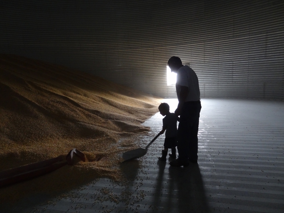 "Grandpa's Helper" My nephew 'helps' my dad sweep out the last of the corn in the bin.