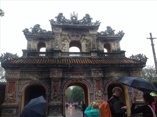 On the early morning bus to Hue, Kristy and I met Carrie, an aspiring jewelry designer from England. We arrived to a gray, drizzly day, checked in at a hostel, and set out to find some eats. After stopping for great street food, Kristy returned to the hostel while Carrie and I visited the Hue Citadel, which used to be a walled city/fortress/the home of emperors and other rich, important people. It isn't in the best shape now but is being renovated in accordance with UNESCO standards.
