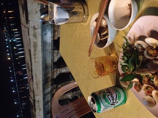 Getting back to Hue meant more street food for dinner! I explored the night markets along the Perfume River, sampling skewers of grilled ground fish (fish-balls, if you will); fried sweet and savory dumplings; plastic cups overflowing with slices of green mango and lychee; and fresh clams grilled next to the water they came from, served swimming in lemongrass, chili, and lime juice.