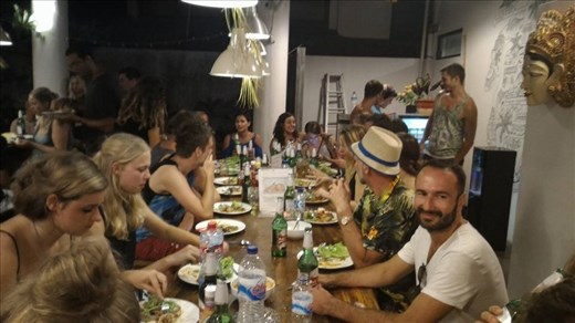 Heading back to the hostel, I went to the rooftop to watch the sunset and read for a while-and then-New Years Eve dinner was served. About 20-30 of us chipped in around $8.00 a piece for the hostel to cook dinner for us, and they served potatoes, salad and ice cream (and chicken). The food was fine, but as per usual in the hostel-the treat was breaking bread (and beer) with friends from all over.