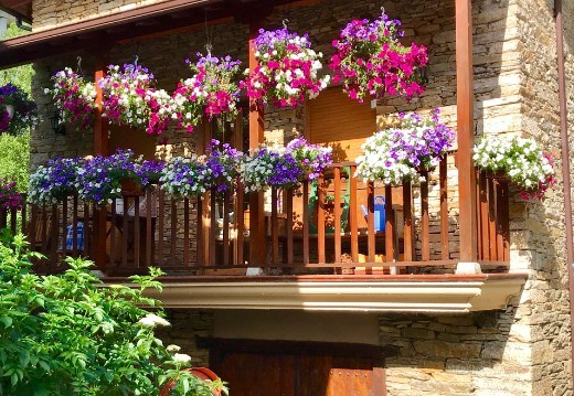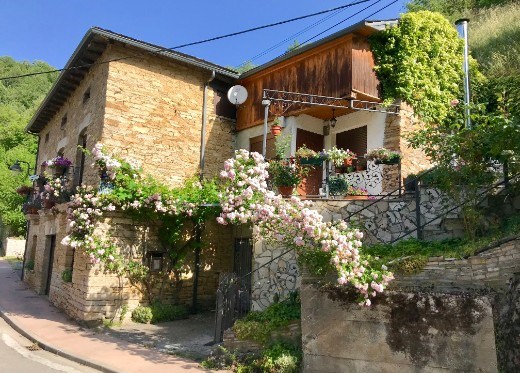 Flowers flow from every window box and ledge in Vega de Valcarce, the largest small town (population about 700) on our way to O Cebreiro (Dintaman & Landes, 2017).