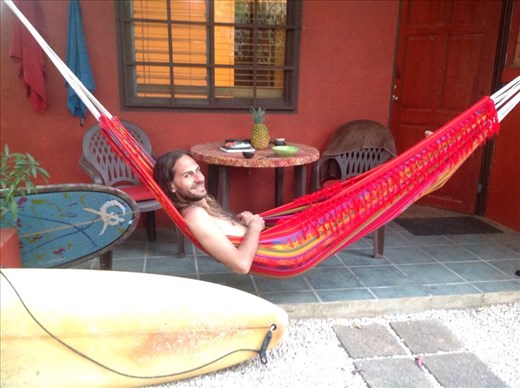 Fruit man came in his truck with a selection of produce to pick from....I got a stack of fruit and veg and Mike was looking forward to eating the big, juicy mango. The rest is pretty much just lazing in the hammock with an arvo surf. The waves at Playa Grande barrel so perfectly, so sitting right on the break and watching them curl over is just as cool as surfing them. I was on a tank of a longboard so I pretty much got anything small I went for, yippee. Mike hung out in the more serious, local break....not for me.