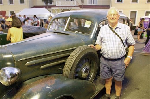 While we were perusing the cars we came upon one that, to put it charitably, wasn’t ready for Prime Time. It was a 1936 Chevy with rust showing through the dull green paint. Ron used to have one just like it. In fact, a close look at the registration tag on the windscreen showed it was the exact car he owned! He hadn’t seen it since 1983 — what are the odds?