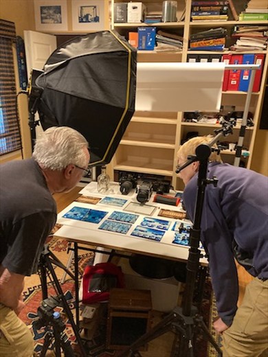 After all of the questions about kids, trips, ailments, medications, upcoming doctors appointments and such were addressed, Steve showed us his new photo projects. Actually, he has returned to the basics of photography. He has a pin-hole camera, makes albumin prints from egg whites, cyanotype prints on glass and other esoteric processes beyond my ken. Roz has been Zoom-ing on-line writing workshops and they both take a variety of classes, online now, at George Mason University.