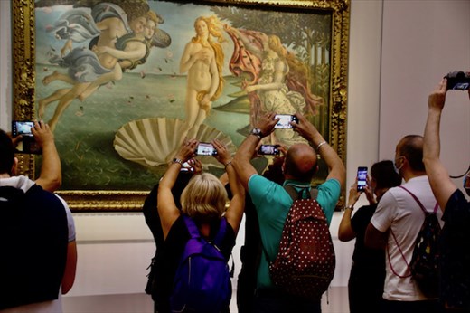 ONE PAYS A PRICE TO VISIT THE UFFIZI—and the €20 ticket cost is only the beginning. Now you have your temperature scanned and show your Covid “Green Card” followed by an airline-like security check. After making your way through a tunnel maze you’re confronted by the 160-stair climb to the third-floor where, out of breathe and sweating, you can begin the journey through the art of the Renaissance.