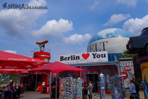 Pointing at the Berlin Wall is this sign on top of a small shop. A huge indication of Berlin's ability to face its past and give it a massive middle finger.