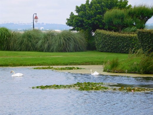 We went back over to Honfleur today to explore a very large park that we had never visited before. It's claim to fame is a garden within the park that pays tribute to all the famous people born in Honfleur or who chose to live and work there. The park is indeed quite large and the gardens which honor their illustrious citizens are individually set up. The shapes of each space are different and they are decorated with varying shrubs and flowers. We easily found Boudin, Baudelaire, Courbet and several others we had never heard of. But, no Monet! When we found the pond with waterlilys, I was sure that he had to be nearby. But, if he is, he is well hidden!