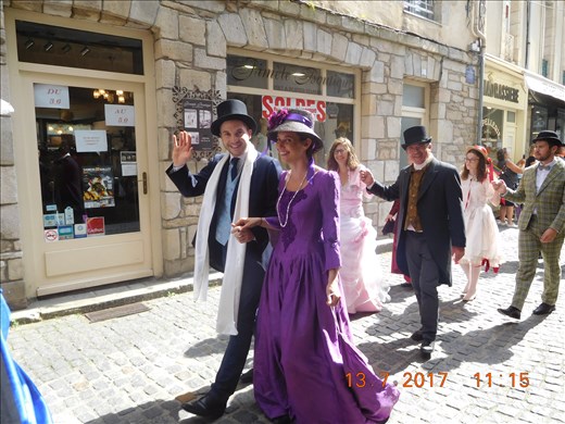 The town and many tourists turned out to watch the tribute to this period of time in Vannes' history. There was an impressive parade, several different bands, enjoyable street theater throughout the city, talented jugglers and acrobats, antique cars, bikes and baby carriages and hundreds of townspeople dressed in the authentic costumes of the different time periods represented during the Belle Epoque.