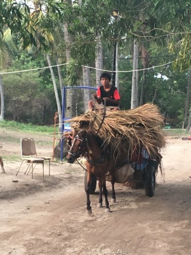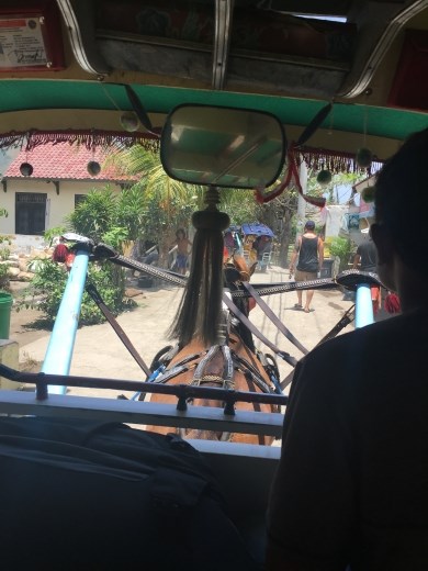 The next morning, we took the Wahana ferry to Gili Air. This was the most disorganized ferry I have ever experienced. This is not a judgement on the Wahana Ferry. ALL of them were horribly disorganized. We stood under the boiling hot sun on the dock for about 45 minutes waiting to board the ferry and the luggage situation was a mess. When we arrived in Gili, unbelievably, the unloading process was even worse. We had to drag our luggage across another boat, onto a floating dock which was dangerously unstable. Then we fought our way through the crowd of people trying to load onto the ferry at the same time as we disembarked. It was not a great experience. When we finally got off the dock, we found a horse taxi to drive us to our hotel, the Balengku Home Stay. Gili Air does not have any motorized vehicles at all. I have to say that I was very conflicted about the way the horses were treated on Gili Air. While they all seemed well-fed, they were frequently left harnessed to their carts in the hot sun, and I never saw a single horse being given water in the entire two weeks we stayed on the island. I’m not a horse expert, and so I can’t say whether this is normal, but it seemed cruel to me. We opted not to use horse taxis at all, except to take our luggage to and from the ferry dock. Everywhere was within walking distance anyway.