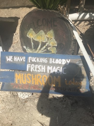 We didn’t do too much on Gili Air. Our main goal was to relax. On our first day, we took a long walk all the way around the island, which took about 90 minutes. You can also ride a bike, but there are stretches of powdery sand through which you will probably have to walk the bicycle. It was a good introduction to the island, and gave us some good ideas about places we wanted to visit during our stay. In the coming days, we had a happy shake at Reggae Bar, which was way more expensive than in Thailand, and not as good. The sign below isn’t from Raggae Bar, but it was something we saw multiple times around the island. Sorry about the shadow. We are not photographers.