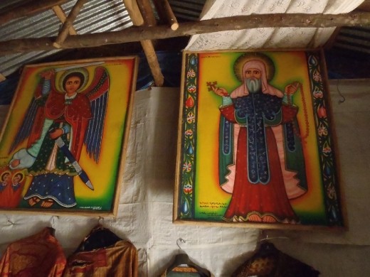 Many people perceive monasteries to exist in places like Tibet, India, or Bhutan. If you've ever read about Barry the Bravest St. Bernard you may think of the St. Bernard Monastery in Switzerland. However, the islands of Lake Tana have their share of monasteries and I would visit some of them today. Let's see: I didn't sleep particularly well last night. I had worn my trousers, long-sleeve shirt, and socks to bed but the mosquitoes ate the hell out of my face. I was immediately worried (especially since the bites were that close to my brain) because I've heard malaria is endemic in Bahir Dar. I have chloroquine tablets but many African strains are resistant to chloroquine and the pills taste horrible! You wouldn't give them to your worst enemy. My best bet is to remain covered whilst in Bahir Dar. For someone who doesn't care for hotels, the Ghion Hotel comes as a pleasant surprise. French toast and tea for breakfast are both cheap and filling, birds fly around the beautiful flower-filled courtyard, and there is a spectacular sweeping vista of Lake Tana from your breakfast table. The sunrise is among the best I've ever seen! Last night I asked around about a boat trip to the monasteries and one person told me he knew of a friend but he never got back to me. As I was feasting on my french toast a local approached me and offered me a trip out to the monasteries for 150 birr. As I got my stuff together I realized I forgot my water filter, and I had already walked a good distance. Since I'd be out there for a few hours I had to buy a bottle of water. My goal for my time in Ethiopia is to not buy a single bottle of water, but this would end up being the only bottle of water I bought during my time here. A few passengers who were expected to show up didn't, so I was told I had to pay 300 birr, but I raised a stink about it (the charge is for the boat and costs less the more passengers there are). The tout who brought me here told me not to worry and that I could pay 150 birr. That helped a lot because I was unsure if admission fees to the monasteries covered all of them or each. The other passengers were a couple of Germans, and Ethiopians from Addis on vacation in Bahir Dar. We cruised briskly along beautiful Lake Tana; the colour of which blends in well with the sky. A half hour later we disembarked at the Monastery of Kebran Gabriel where a priest in a yellow robe greeted us.