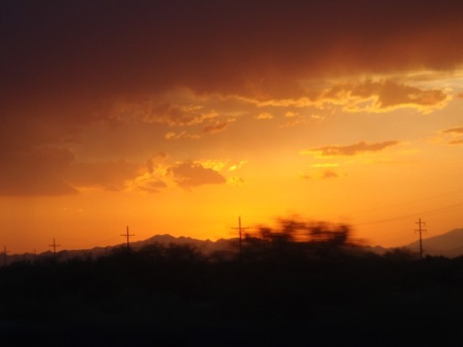We were greeted by a magical sunset shortly after crossing into Arizona. The sunsets of the Sonoran Desert are unforgettable and I have many memories of watching the sunset from my uncle's property as the sky would turn orange and then a bright pink. As the sky darkened tonight I was greeted by a bright crack in the sky...