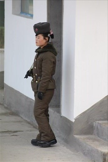 I tried them but I didn't really care for them. We would take our first trip outside Pyongyang this afternoon to the port town of Nampo. Leaving Pyongyang behind we’d drive through fields growing primarily cabbage and rice. Upon reaching a checkpoint I found the female guard very cute and this is where my high-powered lens became handy.