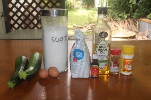 I’ve worked my magic in many ways on Norfolk Island, with my photography skills all round, motivational skills at the school, speaking skills on Radio Norfolk, and cooking skills with my various friends, among other things. Today I’d take my baking skills to the Minischool. Cristina searched fruitlessly for zucchinis yesterday but the golden rule on Norfolk is that just because you don’t see something doesn’t mean it isn’t out there. Resourcefulness skills would work in my favour this morning. Shortly after 8 AM I was at Foodlands and there were no zucchinis, but then I asked round and it turned out somebody just brought in a box of them so I quickly bought two. When I returned 20 minutes later after chatting to Duncan regarding geocaching and getting an idea to bake some at Dave’s house there were only two left so I made sure to snap them up quick. Some tourists this morning complained that there are so few vegetables on the island so I told them Norfolk’s "golden rule." Most of my mornings here I’m catching up with people so I needed to get moving and get to the Minischool. The only ingredient we were missing was vanilla, so I hurriedly got to "Foodie's" to pick some up, getting a lift each way. Lined up in a row are zucchinis, sugar, oil, eggs, vanilla, flour, cinnamon, baking soda, and salt.