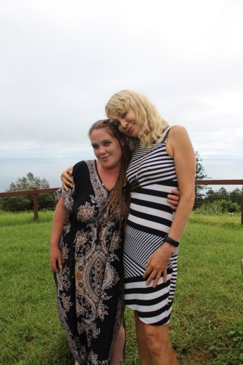 The following morning, James would give Alison and I a lift to Racheal's house; she immediately took a liking to Alison. Whilst I had baulked at the possibility of Alison drinking, Racheal shrugged it off with a smile and said "Chris, she's on holiday, let her enjoy herself." Therefore, we did just that. Alison's licence is suspended, I don't drive, and Norfolk is a tricky place to get around if you don't have transport, so she's receiving a crash course in how I travel. Stopping for a feed and some grog at the Fish & Chook Shop and the Bond Store, respectively, we then took Alison for a drive up to Mt. Pitt. Alison and Racheal, side by side.