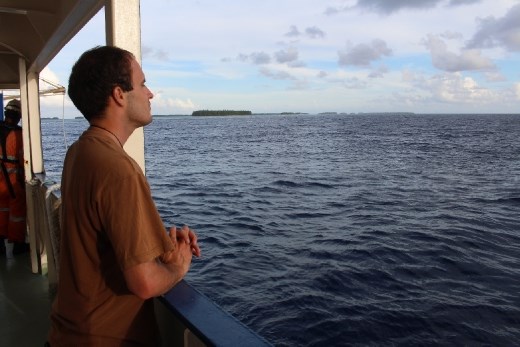 The day I arrived I asked myself if all the effort I put forth to get to Tokelau was worth it. After the 48-hour journey to get here and four days of being here, now I feel the effort was absolutely, resoundingly worth it! Ross and Katie have been gracious hosts. Last night Bill and his new wife visited and we had a fabulous dinner of fish, rice, and lamb with homemade pumpkin loaf for dessert. It’s a real novelty to bake my creations in Tokelau. Yesterday I had the chance to go out across the lagoon with a local named Tiu.