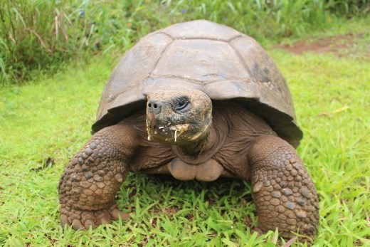 Looking like a cross between a wise old grandmother and a prehistoric creature, Mrs. T was brought here from the Galapagos Islands with four other giant tortoises between 1937 and 1951. For years she was known as Mr. Turpin but later shortened to Mr. T, until a visiting zoologist determined it was a female, so she's now Mrs. T. She was young when she was brought to Pitcairn and is estimated to be around 80 years old. Giant tortoises have one of the longest average lifespans of any terrestrial animal. She could easily live another 100 years, meaning she'll very likely outlive me. As a wild creature, Mrs. T can roam practically anywhere on the island, including vegetable gardens (much to the dismay of locals). Some unfortunate visitors have been unable to find Mrs. T so I was lucky to see her straight away. Her favourite food is bananas but she knows to avoid the green ones so I had to make sure the fruit I brought was ripe enough. Though she's extremely gentle I had to be careful not to get a finger taken off as she gobbled the banana with the peel.