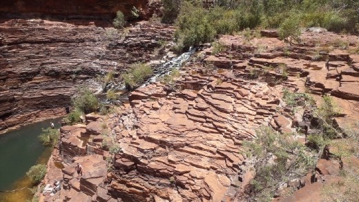 Traditionally the home of the Banyjima, Kurrama, and Innawonga people, "Karijini" is the Banyjima name for Hamersley Range. The park is seriously remote, and facilities are rather lacking. There are no showers, no shop of any description, and only one place to get water, located near the visitor centre. Upon arriving at the campground I wanted to pitch my tent and then get out there an explore despite having little sleep last night. A midday nap is impossible in my tent during the day. When Krista speaks highly about a place, I know I have to see it for myself. Dales Gorge I opted to explore first and upon Fortescue Falls I descended.