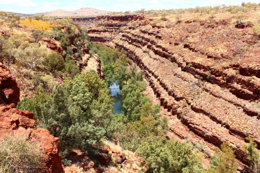 It's not a palindrome, but an anagram. Years ago, my friend Krista spent close to two years in Australia. She raved about Karijini National Park, therefore when a good friend speaks so personally about a place it must be special. When I looked at it on the map it was out in the middle of woop-woop. Last night I pitched my tent outside of Auski Roadhouse where the mozzies were ferocious. My face, neck, arms, and legs were all covered in bites. Refreshed after a shower and a coffee, my gear was ready and my thumb was out toward Karijini. It was only before long that I was picked up by a guy heading to Tom Price, which is the provision town for most people travelling to and from the park.