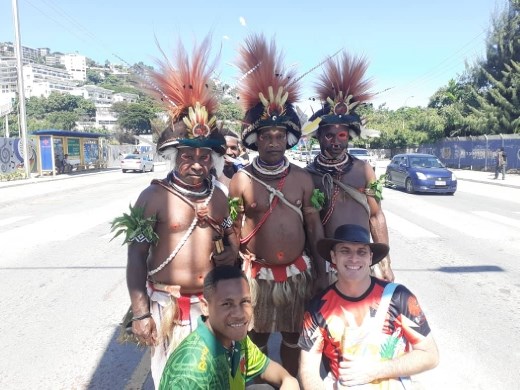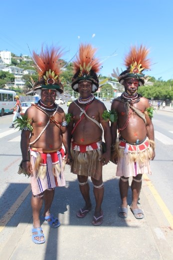 As I sat with an expat, he told me that people in Moresby drive their car to travel 300 metres but I've always found that silly. It reminds me of friends I know in LA who drive their car to go to places within the same shopping centre. I was also told that if Kokoda isn't possible, that Mt. Wilhelm is a great Plan B. Just outside I got silly with some traditionally dressed Highlanders.