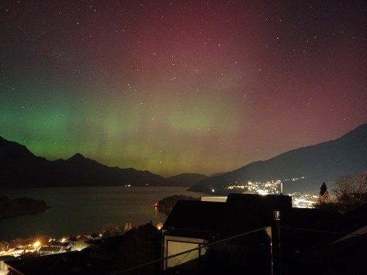 In '18 I braved -16 cold on a short journey to Scandinavia to photograph the aurora borealis (northern lights). My friend Craig has an aurora forecast app on his phone and told me there would likely be an "event" going on this evening. As I walked up the steep hill from Queenstown, I could see lights shimmering and shooting across the sky...and they weren't meteors or comets. I walked faster, as I was unaware of how long the event would last. A few months ago I was in India and I missed an opportunity for a colourful celestial show in either hemisphere. This evening, the aurora australis was dancing across the sky over the Remarkables!