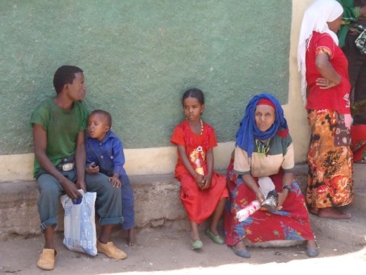 Digging into some beyanetu with injera for lunch, I feel happy that, after recharging my batteries in the comforts of Bole, I'm now back in the real Ethiopia. Even with all the challenges this has been an incredible journey! Spiced tea, trekking the Simiens, Lalibela's churches, tej, CouchSurfers, Lucy, coffee ceremonies, and the Blue Nile Falls have been some of the many high points. Beggars, hustlers, long bus rides, flies, and dust so bad I've had to scrub it off are some of the things I'll wish to forget. Speaking of beggars, an old woman missing both of her hands was banging on the window for change. I've seen so many Ethiopians who are disfigured: missing legs, eyes, hands, feet, and the whole lot. It's very sad. We were in the market town Asbe Tefari when we had lunch.