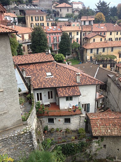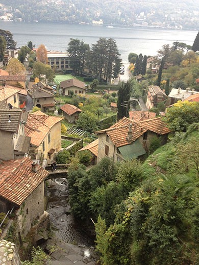 Anyway, let’s close out the Lake Como, Italy portion of the first of four school vacation European expeditions. Marlene and Ken drove to the city of Como (in Italy) one day, having seen Lugano (Switzerland) on the way to our condo in Menaggio. Both are good-sized cities near Lake Como (Como is actually at the end of the lake). Como was fine, with a typical ancient center city. We happened to check out the Como football (soccer) stadium (every city has one), and it was amazingly run down. Probably had about 10,000 seats. It’s a real task to get a grasp of professional football in France, then Switzerland, and then Italy. There’s Division 1 (the Major League) in each country and then lower divisions. It seems every decent sized city has a pro team at some level. And, the teams move up and down between divisions based upon performance each season. We’ve glimpsed a few French and Italian games on television and it makes Major League Soccer (MLS) in the U.S. look like it’s being played in slow motion. We have four tickets to see FC Barcelona on March 1st. They draw over 90,000 for each match. It should be interesting. Meanwhile, back to the drive to Como. Along the way we left the “modern” road along the lake, which at some points is built up the side of the hill, looking down on the villages and the lake. Marlene wanted to go into the village of Moltrasio. This, of course, meant some hair pin turns, some scary elevations, and some streets so narrow you’re sure you can’t fit your car through.