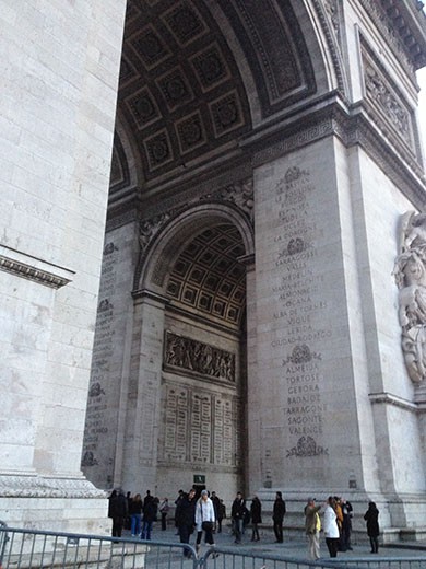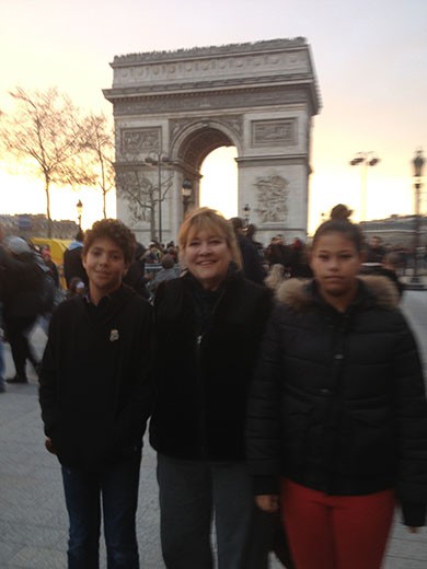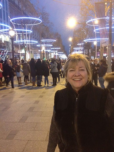 Day #7 – Saturday, December 28 – So, we were down to our last day and we still had to walk the Champ-Elysses, go to the Arc de Triomphe and take the evening Seine River cruise. We got to the Arc de Triomphe via the Metro just before dusk. Lots of people! You’ve got photos to prove we were there. It was windy and chilly. We did a very short version of walking down the Champ-Elysses and stopped into the highest grossing McDonalds in the world (15 cash registers at the counter). That’s Marlene in the photo among the bright lights of the Champ-Elysses. Got home for a rest and then went to our farewell dinner at the Café Rousillon, which is where we started with the fabulous pork chop dinner preceeded by great onion soup. It was all of the second time through.