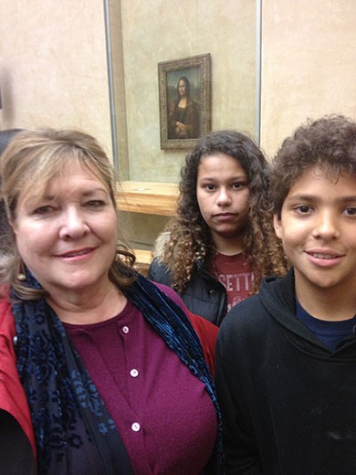 Day # 6 – Friday, December 27 – Yes, we survived the Eiffel Tower in the morning and Marlene and I made it through our walking tour of antique shops. We took the Bus #69 home from the antique tour, only emphasizing that the #69 is a lifesaver if you stay in the Rue Cler area. That left the Louvre Museum and how to attack it. It was either go early in the morning or try Wednesday or Friday evenings, the only nights the museum is open. We grabbed the Friday evening opportunity, taking the cab from our apartment and disembarking in a light rain. The line wasn’t too long. We got inside and headed to see Mona Lisa. There’s a photo to prove we were there. The Louvre (you can look it up) was once a palace and the entire tour of art work covers 12-1/2 miles. afterwards, we went to the movie to see The Wolf of Wall Street. Keaka had announced it was PG-13. It’s closer to X-rated, so we dropped a bit of cash to see part of a movie (and give our teenagers a quick course in trashy sex and language).