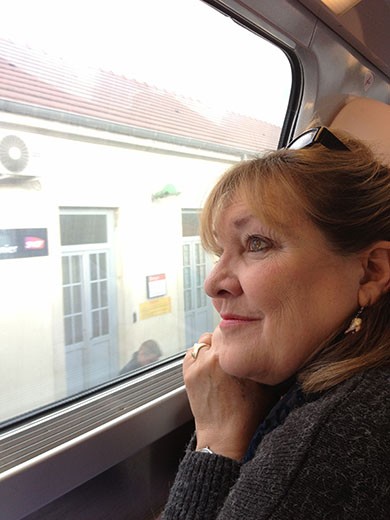Today’s train trip home featured two trains, starting with a slower train from Strasbourg to Lyon, which included a number of stops. And, you’ll see a photo of Marlene looking out the window at an old train station along the way. Though we were totally in France, there was still a German feel to the towns and countryside, which developed into a slight Swiss feel as were travelled not far from the Swiss-France border. Lots of farms and some hills here and there. Nothing really brilliant about the cities and towns. Our transfer at Lyon was interesting, in that the Lyon Gare (train station) was chaotic on a Sunday afternoon. And, French trains arrive and depart on time. Our train from Strasbourg was headed to Marseilles (no stop in Aix-en Provence). The train would stop for only a few minutes in Lyon, with lots of people clamoring to get off, with other folks pushing to get on the train. Typically, a French train spends only two minutes at a stop. It’s an art form to get off and on, especially with everyone carrying suitcases. Our train from Lyon to Aix-en Provence was the true high-speed TGV train (geez, does it get going – approaching 200 mph). Get off in a hurry at your stop. Our train was barely away from the Aix TGV station when another train pulled up. There is no room for trains being late. Almost every train we were on during the trip was right on time leaving and arriving. There may have been two or three trains that arrived late, but only 1 – 3 minutes late. What a system.
