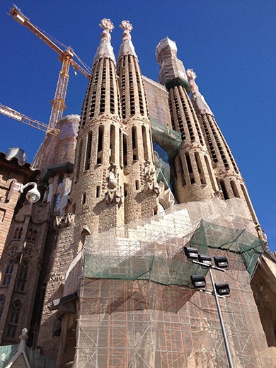 It’s Saturday morning (almost noon) and the female side of the family is still sleeping. We’re winding down our Barcelona visit, having done most of the things we had intended to conquer. Yesterday we did visit Sagrada Familia (to go inside), but didn’t make it to the Mongjuic cable car, so that is on the docket today with a visit to the Barcelona Catedral (Cathedral). There’s talk of a walk down Passeig de Gracia, one of the very upscale shopping districts, another subway journey (looking for a train that goes above ground out in the suburbs), and the FC Barcelona game tomorrownight. And, there’s always eating.