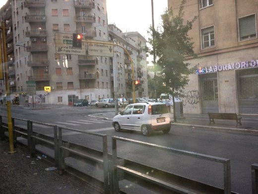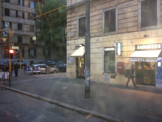 When we arrived in Rome Marlene was very sick and we all became sick when we checked into the Hotel California, where we had a room for four priced at just over 300 U.S. dollars. Well, you could hardly move in the room, as there was a queen bed with a portable twin bed placed adjacent on either side. There was no English television and the tram went by right under our window (cling, cling, cling went the trolley). It was such a wonderful experience I decided to hit the road and go for a tram ride to see even more of Rome. I asked for companionship and had no takers. So, I jumped on the Tram Linea #14, which went by our hotel and turned around (end of the line) two blocks away at the train station. Walking over to the tram stop I took a photo of a building right across from the tram stop and the train station. And, you see the main Rome train station, which is an old station with an extensive modern façade. They did what a few other stations have done and built out the front of the station, adding shops and restaurants, to say nothing of space.