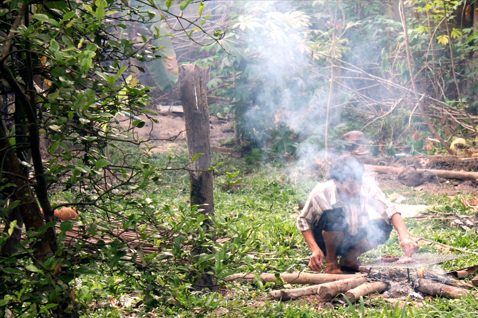 "Cooking Into The Sky" --- After butchering a pig for a traditional/spiritual Hmong ceremony, the men will take the organs (such as the intestines, heart, lungs, and liver) and cook it over an open fire.