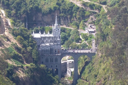 We are in Las Lajas near Ipiales - actually the Sanctuary of Las Lajas where somebody saw the image of the virgin Mary in the mid - 18th century in the cliffs above the river.