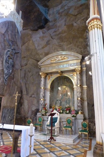 This place here -the church and all it's worshippers- is a strange sight and I wonder how in the world can somebody see something- a saint- in a rock and money gets poured into building a stucture that exceeds all expectations? I don't know, but I imagine Rome or other catholic parts of the world came to help finance this madness.....and the question drills itself into my mind: Why is this much work and money extended to a believe, a phantasy and not to help the sick and starving people in Colombia or even other parts of the world? Well, there are too many examples like that ....it's just crazy making to get into it. So I am going to stop right here.