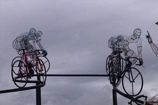 A little further down the road, after being passed by several road cyclists waving at us, we came across a cycling monument.