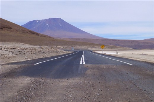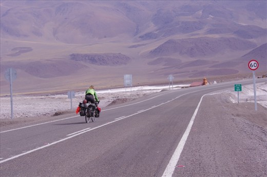 Talking about expectations ...I thought we were done with torturing ourselves riding bad, washboard-patterns, dusty roads, long distances between villages and unsigned turnss to nowhere. It got worse! Our destination was Calma and we hit the beginning of pavement with a huge sign announcing the paved road all the way to the coast town of Antofagasta