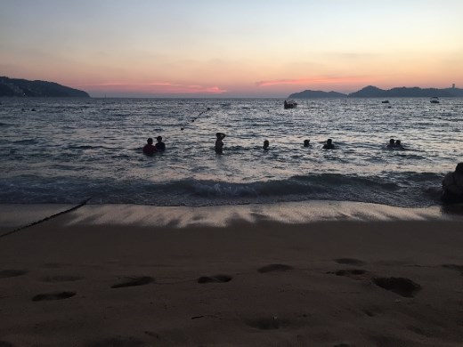 We only stayed in the room long enough to settle our stuff and we were off to the beach. The water was warm, sand was hot, and the view was to die for. We settled onto some chairs where we soaked up the sun. After a bit we moved a bit closer to the water where there was a nice family beside us playing great music. We swam and relaxed until well after dark being one of the last groups to leave; what a great way to pass the night.