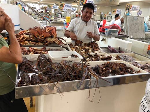 We made our way back to the Marina and arrived to the Mercado de Mariscos, the Panama Fish market. We had walked past it yesterday, but today we adventured in. Today, from the outside it smelled horrible. No wonder the birds were waiting for a little snack. We were very surprised to go in an to find an immaculate market; no smell, very clean and the fish was incredible.