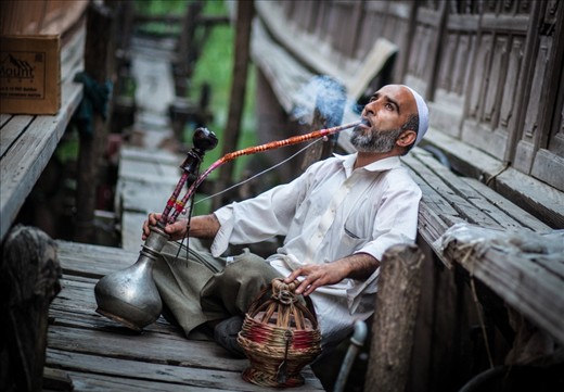 "We do not treat anyone as outsiders, that's our secret". - Nasir Bhai, Srinagar. Caretaker of one of the Houseboats, floating palaces of Kashmir as they call it. This picture was shot one late afternoon, as Nasir Bhai, enjoyed his Hukkah.