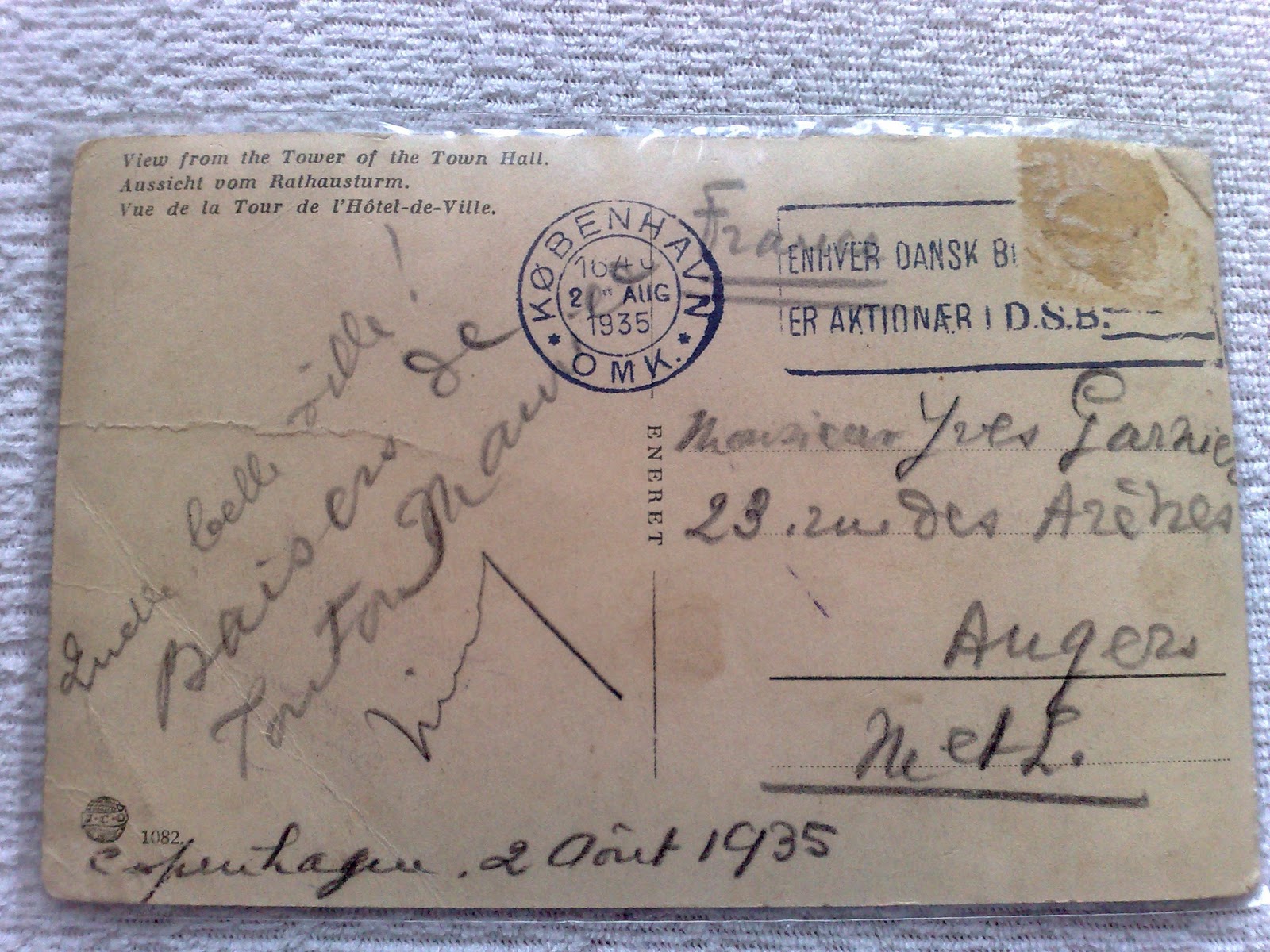 | Copenhagen postcard sent to Paris, Aug. 1935 |