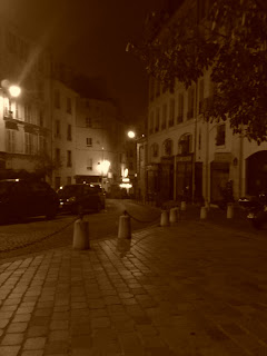 Day 4: there was nothing at all planned for Saturday. Some talked of visiting the Eiffel Tower and other touristy things, but I've done all that tourist business on previous trips, so I declined, instead settling into a late morning sitting in the garden with a book, then doing the grocery shopping with Julie in the afternoon. For the evening, I had plans to go see Midnight in Paris in the cinema that is featured in the film. About a 20 minute stroll from the house. It's been playing in the cinemas in Paris for many months now, but still the theatre was jam packed. Lovely film, lovely experience, made even more lovely by being right in the centre of the film location. Arrived home to find the gang splayed out in the garden, awaiting the arrival of the final members so they could begin to make the crepes and drink the cidre that Julie had bought from a tiny farm in Brittany near where her family has their second home. It was every bit as delicious as she claimed - sweet, bubbly and refreshing. I could have drank a gallon of the stuff! After crepes and cidre, we took our full bellies out for a late night stroll, stopping on those Midnight in Paris steps again.