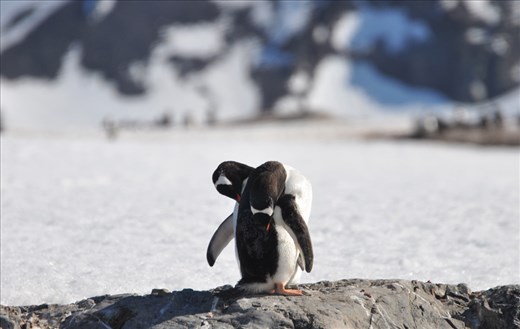 "Honey, we can't call this a polar, bear hug can we?" Love me tender! It is quite an emotional sight to see the penguins wooing each other. There are swoons, a bit of necking with their beaks, some flippity-flop of the flippers, but nothing to beat a really long, warm hug. You could just stay there and watch in awe, admiring these wonderful beings.