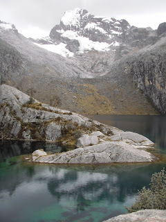 Still high from our Lago 69 trek, we decided to venture to yet another glacier lake - Lago Churup. From our ascent we could clearly see the Cordillera Negro on one side and the Cordillera Blanca on the other. Our elevation was almost exactly the same as the previous day and I was still having trouble breathing. During one of the frequent stops an Andean condor soared over the highlands before us. This hike was by far one of the funnest I have ever been on. At one point we scurried along the side of a waterfall for about a quarter mile and had to partake in some pretty sketchy rock climbing. A hail storm struck and we sought refuge behind an outcropping of rocks. I had not seen hail in well over a decade and it was quite an experience!