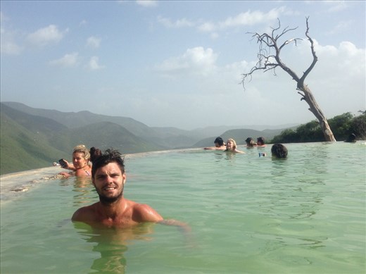 We finished at a place where there was a petrified waterfall and natural springs overlooking an incredible view of the mountains. We met two New Zealand girls who were staying at our hostel and were on the tour who pretty much just came for the waterfall and didn't realise that it was solid from being petrified and were imagining going swimming under the streaming waterfall. It was pretty funny, so went swimming in the natural spring and tried to take photos of each other while treading water and not laughing.