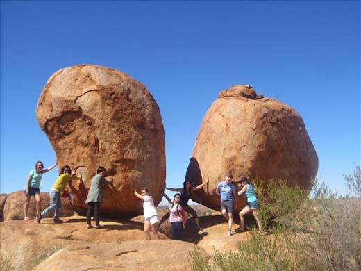 Day 2: Our first stop today was at Devils Marbles. Aboriginals believe if their children come to play here, they are taken by the stones. We had a short game of rugby and then continued on to Wycliffe Well, the UFO Centre of Australia. The service station was decorated with all things Alien. That night I checked into Haven in Alice Springs. Everyone else was staying at Annie's Place and so I head there for an evening meal with the group and a few cheeky ciders.